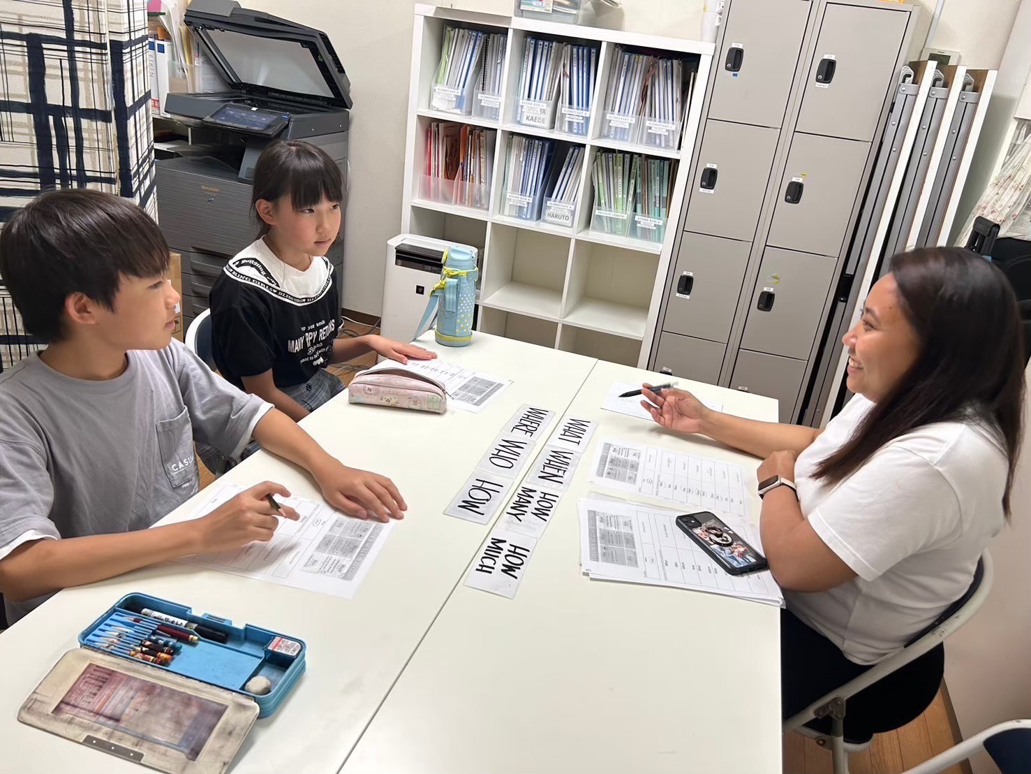 英単語、ライティング、会話を中心に学び、英語への自信を高めていくレッスン。 | 英語の文法、リーディング、会話を中心に学び、英語への自信を高めていくレッスン。 | 英語の文法、リーディング、会話を中心に学び、英語への自信を高めていくレッスン。英検への学習にも適応します。 |