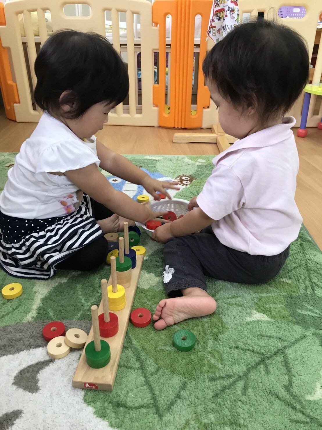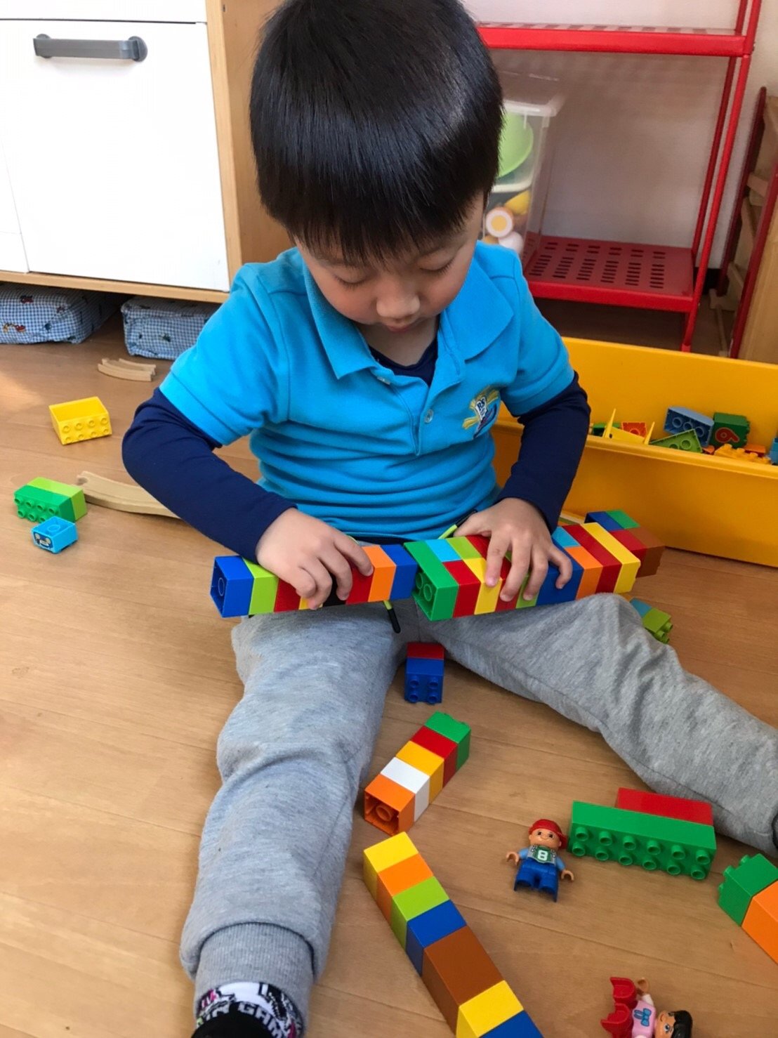 遊んだあとはおもちゃをお片付けし、次の活動への準備。これによって、責任感が生まれます。